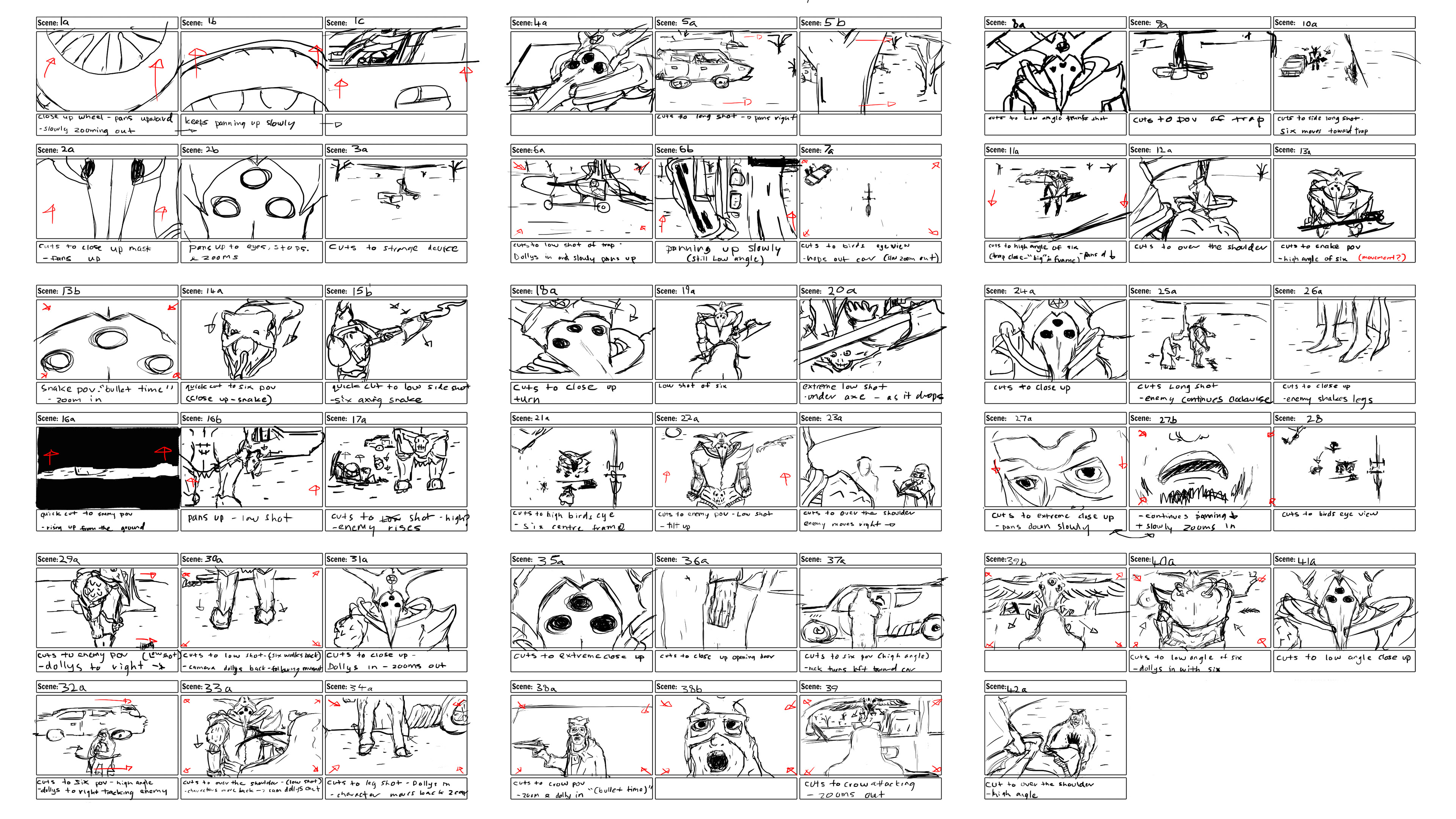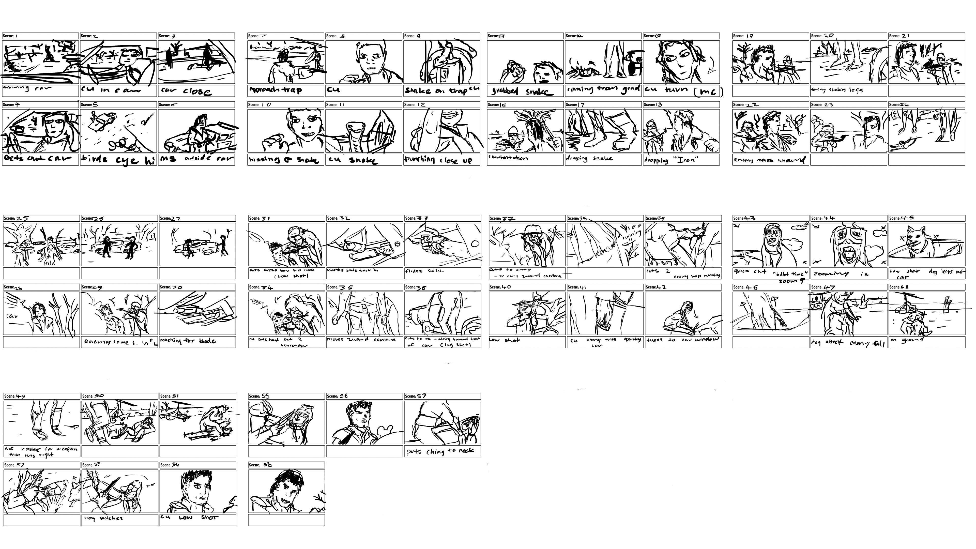 To create the storyboard I started with a rough analysis of my chosen scene and broke down the individual camera shots. This formed the starting foundation for my own interpretation of the scene with my included concept designs.