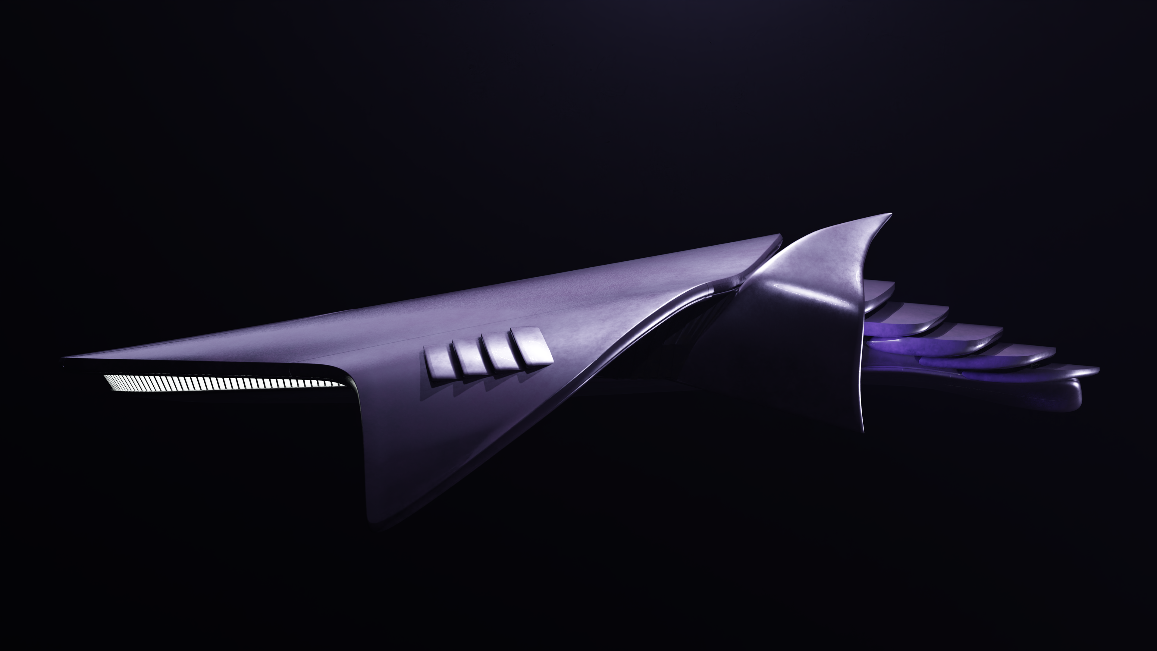 Inspired by nautical life and designed for the stormy conditions of a flooded Earth. The sleek profile boasts elegant wings and fins engineered for aerodynamic maneuverability, both above and below the water.